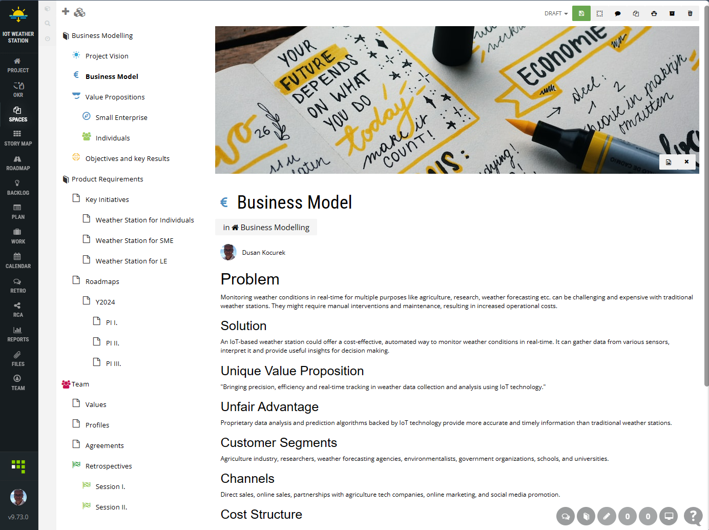 ScrumDesk Team Space Example free team space wiki editor